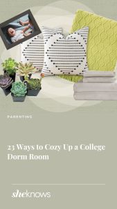 To remedy this, we’re sharing our favorite cozy enhancements to help transform a dorm room into a warm and inviting space! And here’s the good news for you, parents — you don’t need to spend a ton of money to cozify your kid’s dorm room. A few small, inexpensive touches — a soft throw blanket for chilly fall nights, some colorful plants, and a furry throw rug — can really perk up a dull dorm room and make it feel like home.