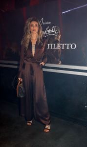 Image Credit: Photo by River Callaway/WWD via Getty Images. While at the Christian Louboutin ‘Rouge Stiletto’ Beauty Event for Paris Fashion Week, Jackson wowed in this silky, flowing brown pantsuit.