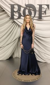Image Credit: Photo by Pascal Le Segretain/Getty Images for The Business of Fashion. For the 2023 #BoF500 Gala, Jackson turned heads in this satin navy gown from CELINE that fans can’t stop talking about.