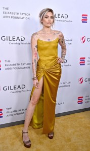 Image Credit: Axelle/Bauer-Griffin/FilmMagic. We’re still not over this golden silk Rasario gown with a high slit that Jackson turned heads in at The Elizabeth Taylor Ball To End AIDS in 2022.