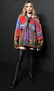 Image Credit: Stephane Cardinale - Corbis/Corbis via Getty Images. Both colorful and confident, Jackson’s Givenchy ensemble of a colorful ripped sweater dress and thigh-high leather boots should be framed in a museum.