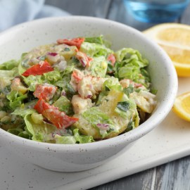 If you’re looking for an indulgent option without the bread, this timeless Caprese salad is perfect for the hot weather. To make Ina Garten’s take on this classic Italian starter, use plum tomatoes and soft fresh mozzarella with some balsamic vinegar, olive oil, garlic, spices, and a bit of sugar. Top with basil leaves for a refreshing, artisanal touch. Get the full recipe here.
